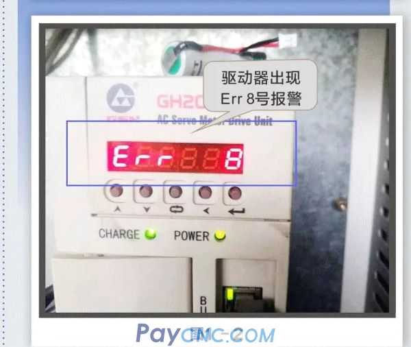 After the GSK25IM-H system is powered on, the PV0008 alarm appears. After opening the cabinet, it is found that the GH2000 driver has an alarm number 8, as shown in Figures 1-1 and 1-2. System alarm.