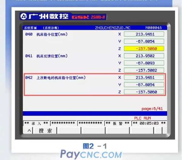 Step 1: Do not power off again after the system is powered on, press the system key to enter the parameter interface, and then press the (Diagnostics) soft key below the screen to enter the system diagnostic interface and search for No. 42, as shown in Figure 2-1, record Diagnose the No. 42 X and Z axis diagnosis data (this data is the machine coordinate before the last power off).