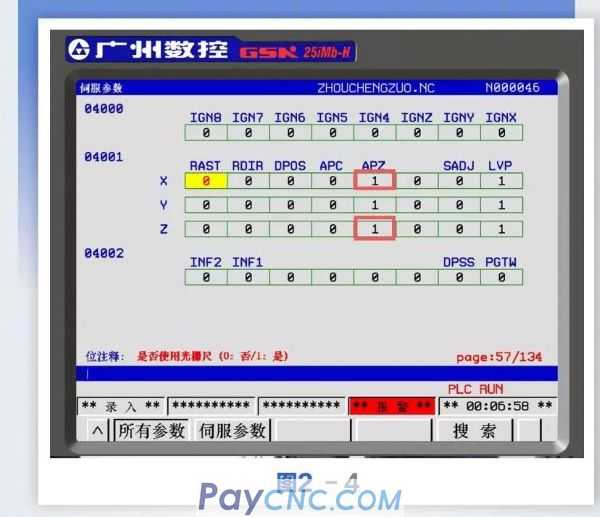 ![]() Step 4: Press the system key to enter the system parameter interface, search for parameter No. 4001 to enter the interface shown in Figure 2-4 below. In MDI mode, move the cursor to the position parameter corresponding to 4001.3X axis and Z axis respectively, press the number key [0] to set the parameter to 0, press the emergency stop button; then reset the X axis and Z axis corresponding After setting the parameter to 1, press the numeric key [1] to set the parameter to 1, release the emergency stop, and press the reset key. At this time, the alarm details of the system information interface have been eliminated. ![]()