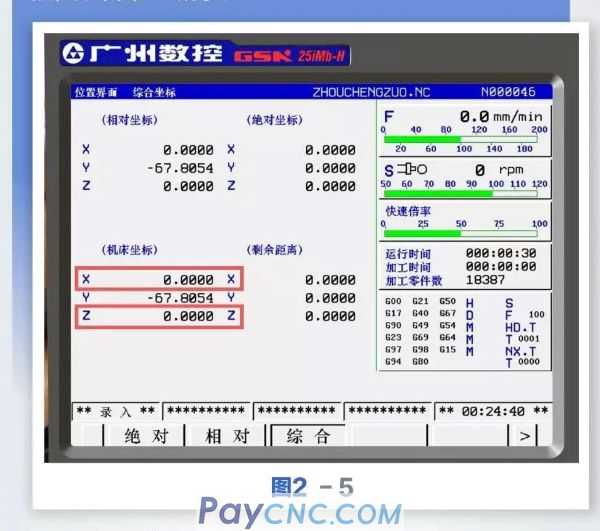 Entering the machine tool position coordinate interface, you can see that the mechanical coordinates of the X and Z axes are "0". At this time, the current position of the machine tool is the new X and Z mechanical zero points, as shown in Figure 2-5 below.